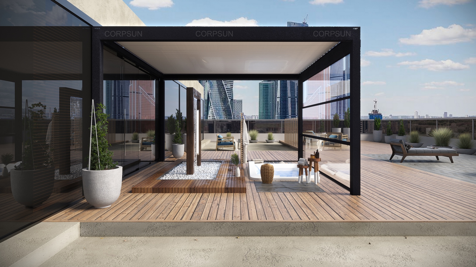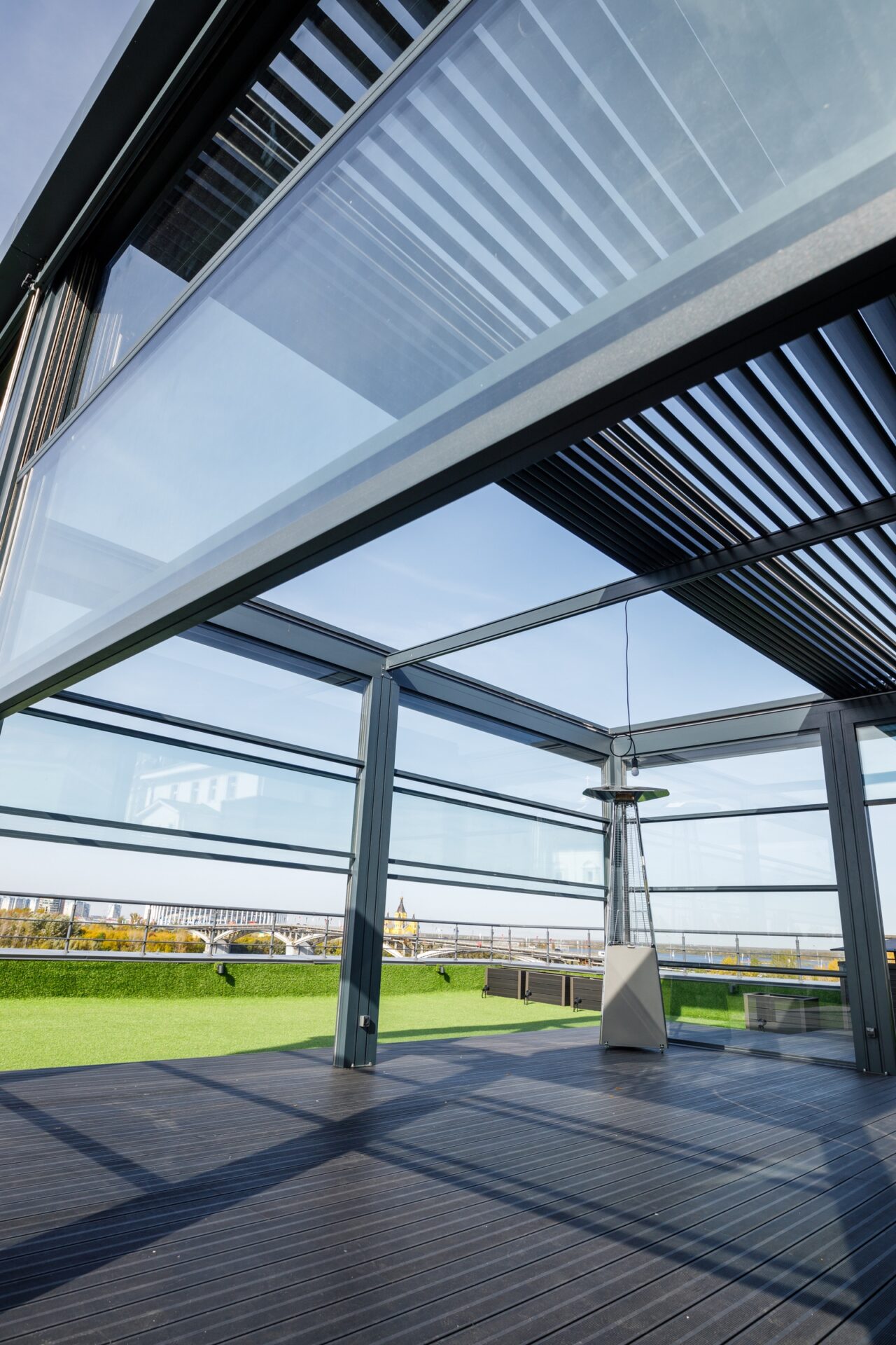 - устройство панорамных площадок на пентхаусах и крышах высотных сооружений.