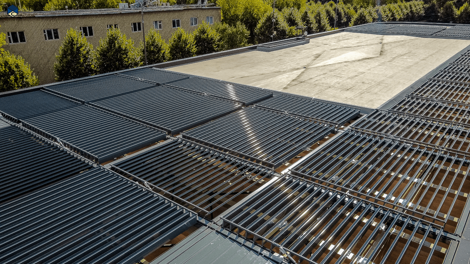 - различными стеновыми ограждениями (остекление, в том числе — гильотинное, ZIP-экраны и системы, утепленные сэндвич-панели);