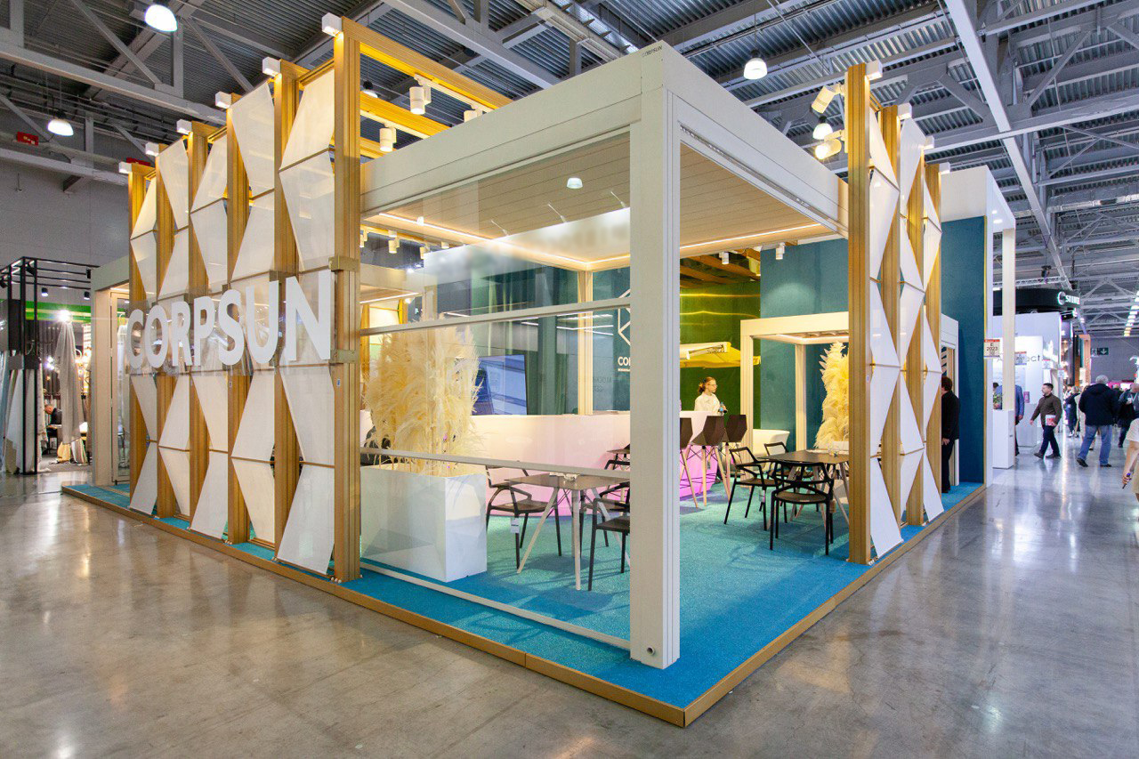 Уникальная и технологичная система «скрытого крепежа» CORPSUN на конструкции в серии профилей 135х135 обеспечивает эстетический вид изделия, скрывая в конструкции профилей узлы болтовых и винтовых соединений в стыковках профилей и делая их невидимыми. Также можно осуществить скрытие проводов питания мотора и LED-освещения.