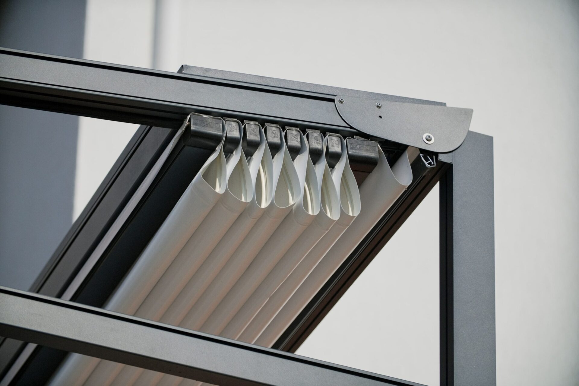 Встраиваемые заглушки и стыковочные элементы для профилей ребер тента придают изделию современный, завершённый и эстетически привлекательный вид, скрывая при этом все крепёжные детали.